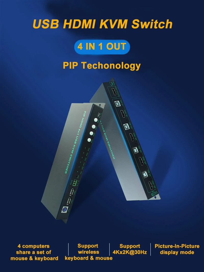 Special Offer for Navceker KVM Switch HDMI USB PIP 4 Port HDMI KVM PIP Switch USB 4K KVM Switch Support Hotkey and On