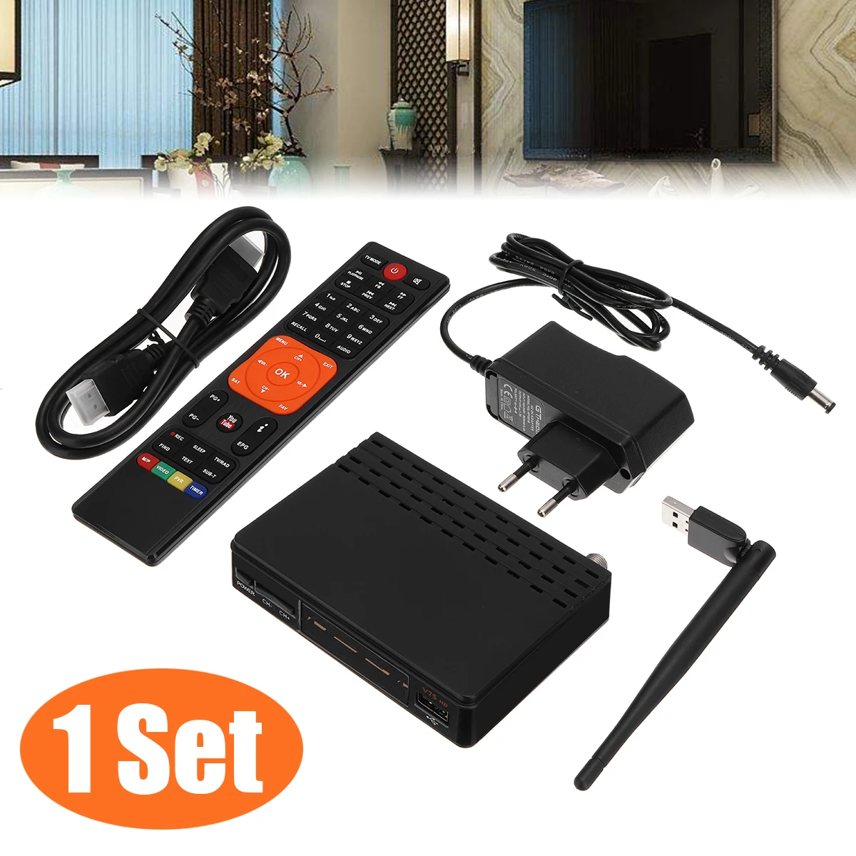 1PC Digital Receptor DVB-S2 1080P Satellite TV Signal Receiver WiFi Set-top Box W/ HD Cable Remote Control Support IPTV Youtube